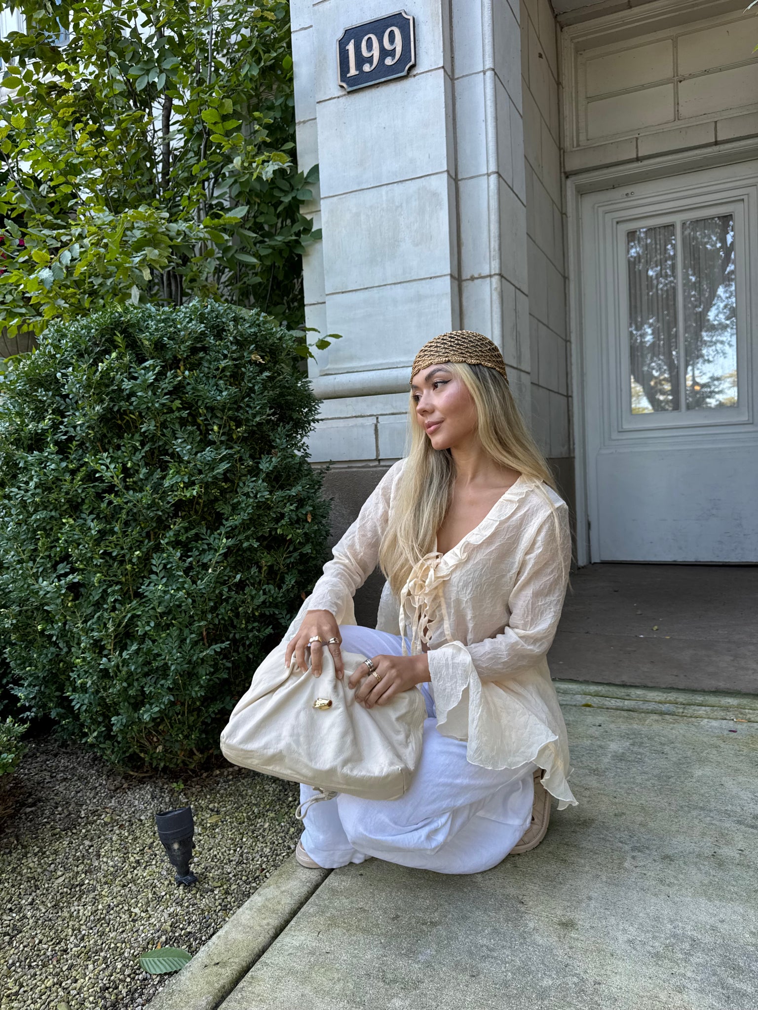 A veces lo más atrevido se convierte en un básico de clóset. La chaqueta Sálenlo toma una estructura clásica y oversized, y le da un giro con detalles en las mangas y su corte inferior más arriesgados y modernos, perfectos para jugar con el layering y crear looks con personalidad.